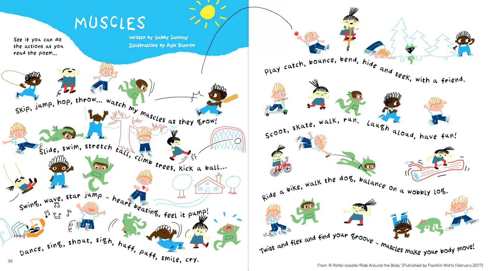 Roller-coaster around the body! Poem, illustrated by Aex Barrow, for OKIDO 81 (from A Roller-coaster Ride Around the Body, published by Frankline Watts)